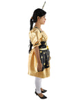 This costume is for anyone who wants to step into a warrior princess role with confidence. The golden color adds richness and visual impact, making it stand out in photos and under stage lighting. Whether you are preparing for a themed celebration, a performance, or a creative photoshoot, this outfit brings character and style together in one complete set.