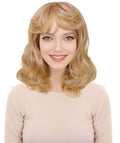 HPO Adult Women’s Kylie Blonde Medium-Length Wavy Wig | Halloween and Cosplay Wig | Flame-retardant Synthetic Fiber