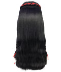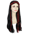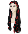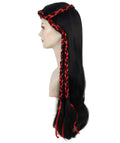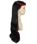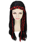 Adult Women’s Long Black Wavy Wig with Red Braided Accents for Your Next Event