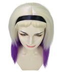 Beautiful Gothic Wig is features a striking platinum blonde base that transitions smoothly into a deep purple ombre at the ends, creating a captivating color blend that stands out in any crowd. Paired with a sleek black headband, it offers instant character accuracy while also being versatile enough for various costume themes.