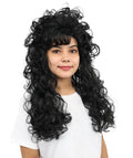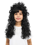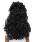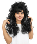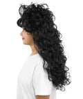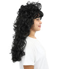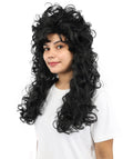 HPO Adult Women’s Long Curly Black Seduction Wig | Voluminous 80s-Inspired Costume Hairpiece for Halloween, Glam Rock, Disco, and Cosplay | Breathable Capless Cap Design