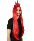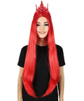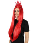 HPO Adult Women’s Long, Sleek Straight Royal Red Queen Wig | Halloween and Cosplay Wig | Flame-retardant Synthetic Fiber