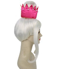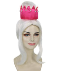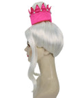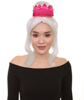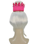 The top is styled into a voluminous bouffant crown, giving a regal and sophisticated silhouette. Accented with a striking removable pink tiara-style, it’s the ultimate statement piece for queens of the stage, stars, and party icons alike.