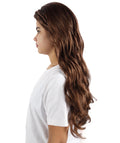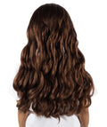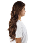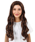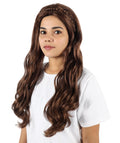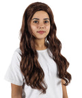 HPO Adult Women’s Long Wavy Brown Wig | Flame-retardant Synthetic Fiber | Lightweight Capless Design for Halloween and Party