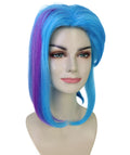 Step into the world of vibrant anime fashion with this Adult Women’s Short Ponytail Style Blue Wig with Purple Streaks for your upcoming Halloween event.