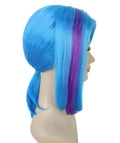 HPO Adult Women’s Medium Ponytail Style Blue Wig with Purple Streaks | Halloween and Wig | Flame-retardant Synthetic Fiber
