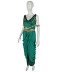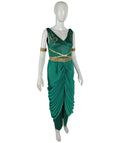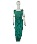 The costume features a flowing green gown with shimmering gold trim that moves gracefully with every step, giving you an ethereal, goddess-like presence. A striking snake headpiece crowns your look, intricately detailed to resemble Medusa’s infamous serpent hair. Metallic accents and draped fabrics create a regal silhouette, while the lightweight materials ensure comfort during extended wear.