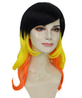 Turn heads at your next Halloween party, carnival, or event with this Adult Women’s Black to Yellow-Orange Ombre Wig featuring a bold transition from deep black roots to vibrant yellow and fiery orange tips.Â