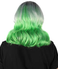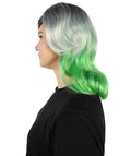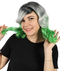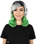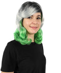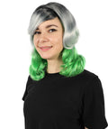 HPO Adult Women’s Ombre Grey & Green Short Wavy Bob Wig with Bangs | Synthetic Fashion Wig | Daily Wear, Cosplay, or Costume Use