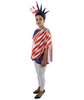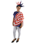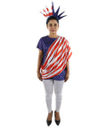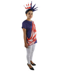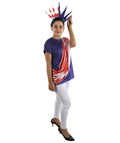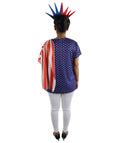 This Women’s Patriotic Theme Dress Costume features a blue tunic-style outfit with a red and white draped design across the front and a matching color-panel back layout, creating a bright presentation look suited for parades, themed events, stage scenes and cosplay character displays. The straight tunic silhouette offers a clear visual outline that remains defined in photos and event lighting.