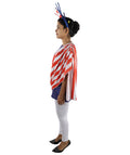 HPO Adult Women’s Patriotic Theme Costume – Blue Tunic Outfit with Red & White Drape Design & Headpiece | Parade & Cosplay Wear