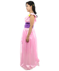 This Women’s Pink & Purple Heroine Style Gown Costume has a simple, flowing look. The long dress drapes naturally and gives a soft, elegant shape when worn. It looks good in photos and on stage without needing heavy details. The sash at the waist helps give the dress some shape, but keeps it relaxed.