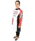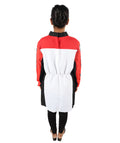 * Bold black, white, and red color blocking with clean stitching for a professional look