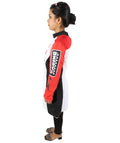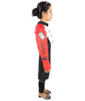HPO Adult Women’s Racing-Themed Costume | Black, White & Red Jumpsuit with Gloves | RONIOR Fabric 3-in-1 Outfit for Performance & Cosplay