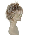 HPO Adult Women’s Short Spiky 80s Style Punk Blonde Wig | Teased Wave with Platinum Tips for Women | Ideal for Halloween | Breathable Capless Cap