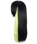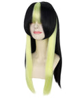 HPO Adult Women’s Straight Long Black & Green Anime Wig | Hair with Twin Tails | Ideal for Halloween | Breathable Capless Cap