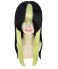 Featuring a sleek jet-black base with striking neon-green face-framing strands, this design delivers an instantly recognizable look for anime, manga, and gaming.