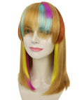 The sleek orange bob-style wig features a bold array of colorful streaks on the front, showcasing bright blue, pink, and green highlights. Ideal for anyone looking to express their creative flair, this Fringe Wig combines playful, modern color styling with a chic bob cut for a fresh look that’s Ideal for festivals, themed parties, or everyday fashion.