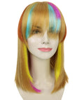 HPO Adult Women’s Vibrant Rainbow Fringe Wig | Bob with Colorful Streaks for Fashion | Breathable Capless Cap