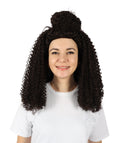 Adult Women’s Voluminous Medium Brown Curly Half-Up Wig for Your Next Halloween and Cosplay Event