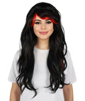 HPO Adult Women Seductress Black & Red Wig | Long Luxurious Wavy Wig for Cosplay, Halloween & Themed Parties | Flame Retardant Synthetic Fiber Hair | Bold Voluminous Look |