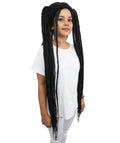 HPO Adult Women's 41" Extra Long Dreadlock Lace Wig | Synthetic Flame-Retardant Fiber | Adjustable Cap for Halloween, Cosplay & Festivals