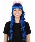 American Singer Medium Length Blue Wavy Pink Bow Wig for Your Next Halloween and Cosplay Event