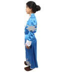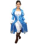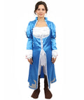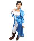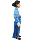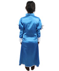 HPO Adult Women's Anime Sorceress Roleplay Suit | Flowing white and blue satin jersey construction featuring a long dress, hand gloves, and leg socks | Ideal for party, Halloween, cosplay, theater, drag, performance, costume events