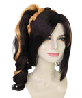 HPO Adult Women's Black and Orange Short Wavy Braided Ponytail Wig | Halloween Wig | Flame-retardant Synthetic Fiber