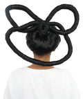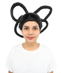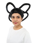 HPO Adult Women's Black Double Loop Buns Wig | Synthetic Updo Hairstyle with Adjustable Cap for Cosplay, Festivals, Stage Performances, Parties & Photoshoots