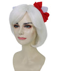 HPO Adult Women's Cute Kitty-Inspired White Wig with Bow Ribbon | Soft Synthetic Cosplay Hair with Attached Ribbon for Dress Up & Parties