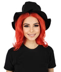 HPO Adult Women's Elegant Gothic Orange Wig and Black Hat–Dark Chic Hairpiece Inspired by Modern Quirk, Premium Breathable Capless Cap
