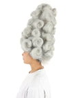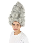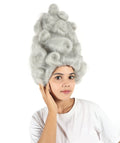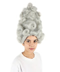 The tall, curled gray wig instantly adds volume and drama, and completes the comical and whimsical transformation.