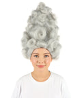 The Tall Gray Wig is crafted with realistic synthetic fibers styled into voluminous gray curls, offering a secure and comfortable fit with its built-in cap.