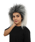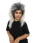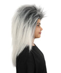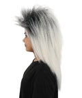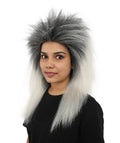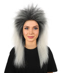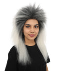 HPO Adult Women's Heavy Metal Undead Black & Grey Wig | Messy Grayish-White Hairpiece with Distressed Texture | Adjustable Cap for Halloween, Cosplay, Stage & Parties