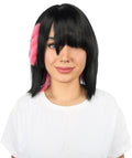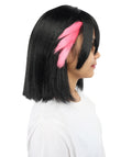 𝐒𝐡𝐨𝐫𝐭 𝐁𝐥𝐚𝐜𝐤 & Soft Pink 𝐀𝐧𝐢𝐦𝐞 𝐖𝐢𝐠 – 𝐒𝐭𝐫𝐚𝐢𝐠𝐡𝐭 𝐂𝐮𝐭 𝐂𝐨𝐬𝐩𝐥𝐚𝐲 𝐇𝐚𝐢𝐫𝐩𝐢𝐞𝐜𝐞 𝐰𝐢𝐭𝐡 𝐑𝐞𝐝 𝐇𝐢𝐠𝐡𝐥𝐢𝐠𝐡𝐭𝐬