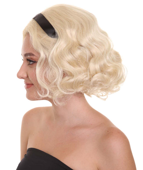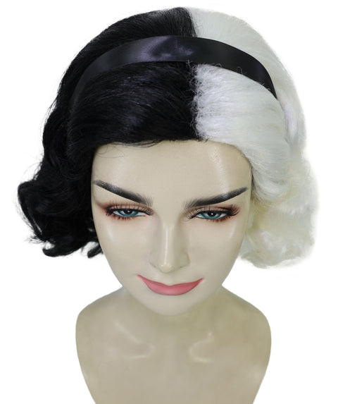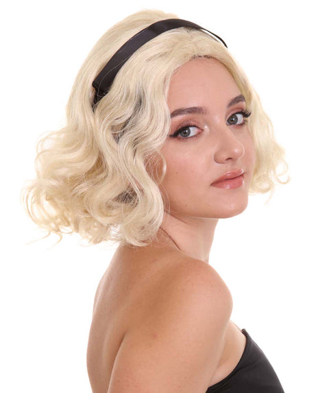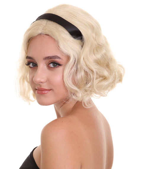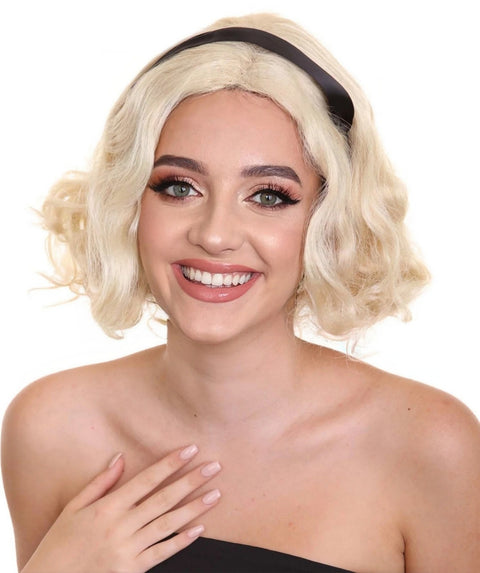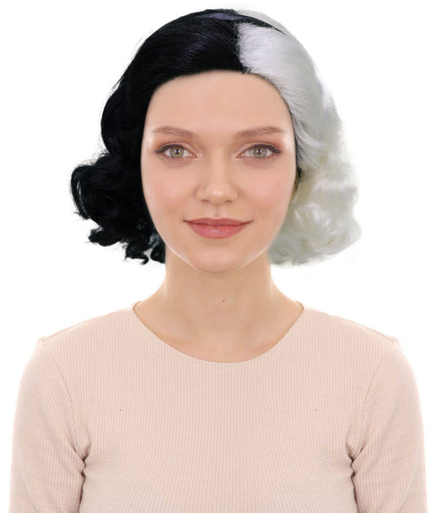 HPO Adult Women's Multiple Color Chilling Witch Wavy Bob Wig , Black Head Ribbon , Perfect for Halloween | Flame-retardant Synthetic Fiber