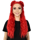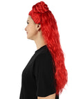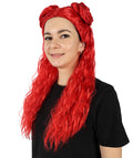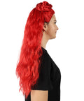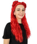 HPO Adult Women's Movie Inspired Wavy Long Red Wig | Halloween and Cosplay Wig | Flame-retardant Synthetic Fiber