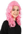 It is a medium-length voluminous Pink Wig with attractive curls. It will help to create a dramatic character like a queen or princess. This Pink Wig will blend with any magical costume and complement your full outfit by giving its magical vibes.