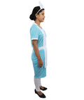 HPO Adult Women's Scrub Nurse Blue & White Costume – Mock Apron and Matching Headpiece | Medical Theme Outfit for Fancy Dress & Halloween Parties