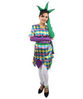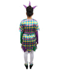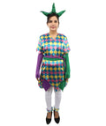 HPO Adult Women's Sequin Jester Dress Costume – Multicolor Jester Style Outfit with Diamond Pattern | Party, Cosplay & Festival Wear