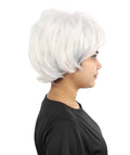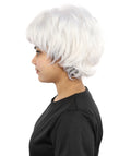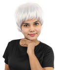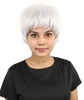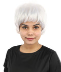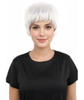 HPO Adult Women's Short Silver White Pixie Wig | Edgy Layered Cut with Bangs | Synthetic Hair Wig for Stage Fashion, Cosplay, Halloween & Bold Party Looks