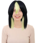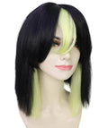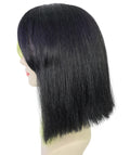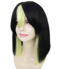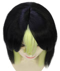 HPO Adult Women's Short Straight Black With Green Mixed Wig | Synthetic Costume Hairpiece with Breathable Capless Cap for Parties