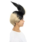 HPO Adult Women's Spiky Black & Blonde Anime Wig | Layered Fantasy Cosplay Hairpiece with High Volume Style for Halloween, Roleplay & Events