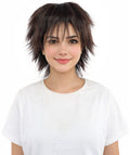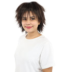 HPO Adult Women's Spiky Layered Short Anime Wig – 12 Inch Natural Dark Brown Messy Wig with Capless Cap Design | Flame-retardant Synthetic Fiber for Costume, Halloween, Parties & Events