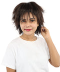 Measuring 12 inches in length, this jet-dark brown synthetic Anime Wig features sharp textured layers that mimic popular anime and video game characters.