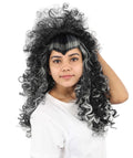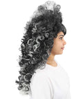 HPO Adult women's Vampire Mistress Curly Wig | Long Layered Black Hair with White Highlights and Teased Roots | Classic Horror Cosplay and Theme Parties