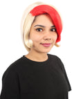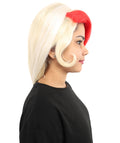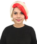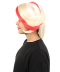So, if you want something that really grabs attention, this red and blonde wig might do the trick. The colors are loud — bright red mixed with blonde — and it gives your a fun, kinda wild vibe. Works for Halloween, cosplay, parties, or just looking extra on stage or in photos.