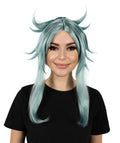 HPO Adult Women's Video Game Braid Blue Wig I Cosplay Wig I Flame-retardant Synthetic Fiber