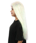 HPO Adult Women's White Sparkling Cosplay Wig | Long Layered Synthetic Wig for Halloween Parties, Festivals, s, and Roleplay